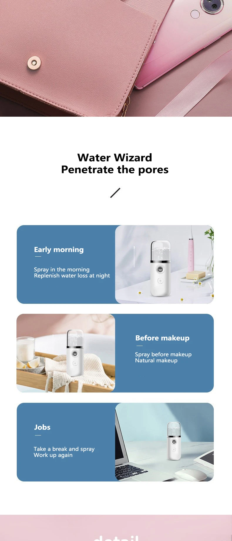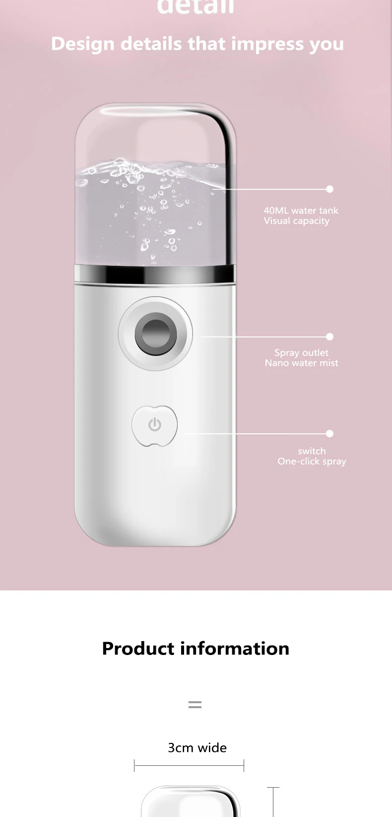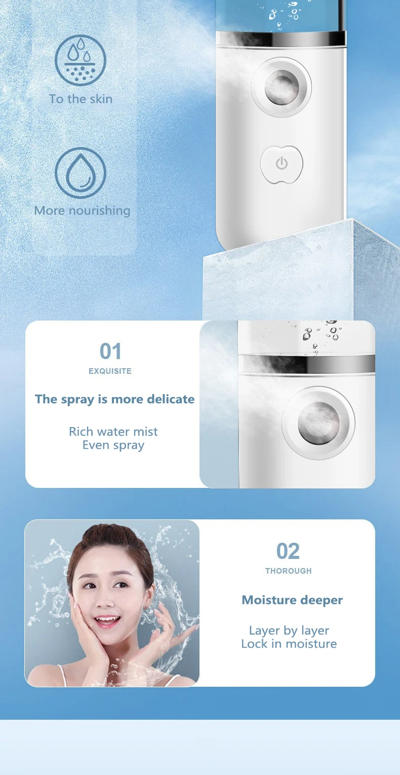 This nano water spraryer with large water tank can penetrate deep into the skin and vitalize the skin.