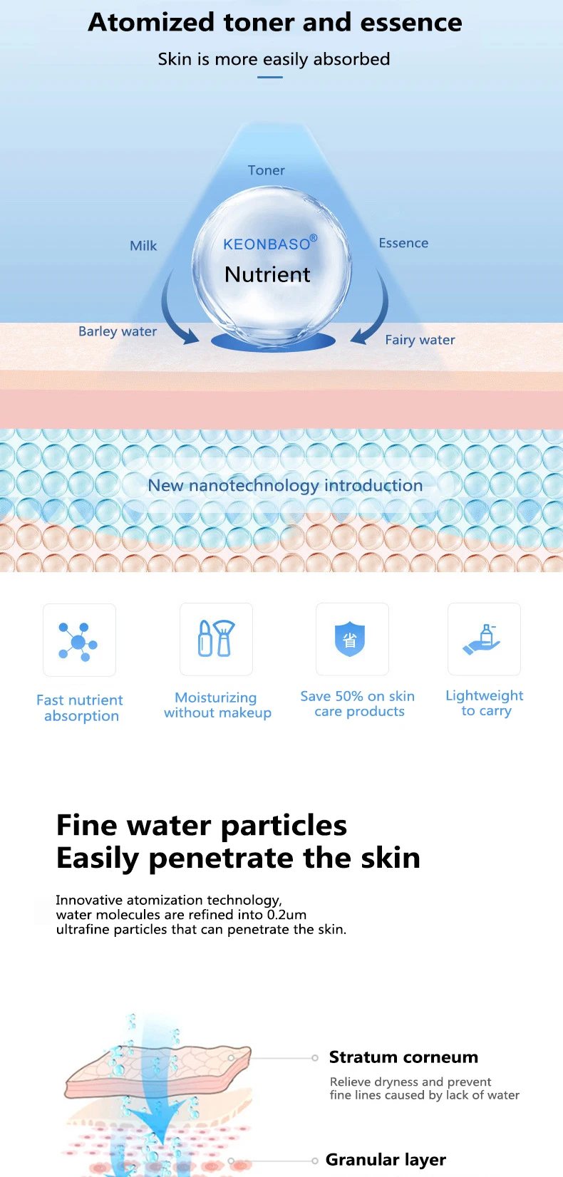 Atomized particles are more delicate and easily absorbed by the face.